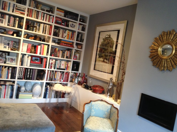 Darcy’s beautiful living room with an extensive library of fashion, travel and interiors books.