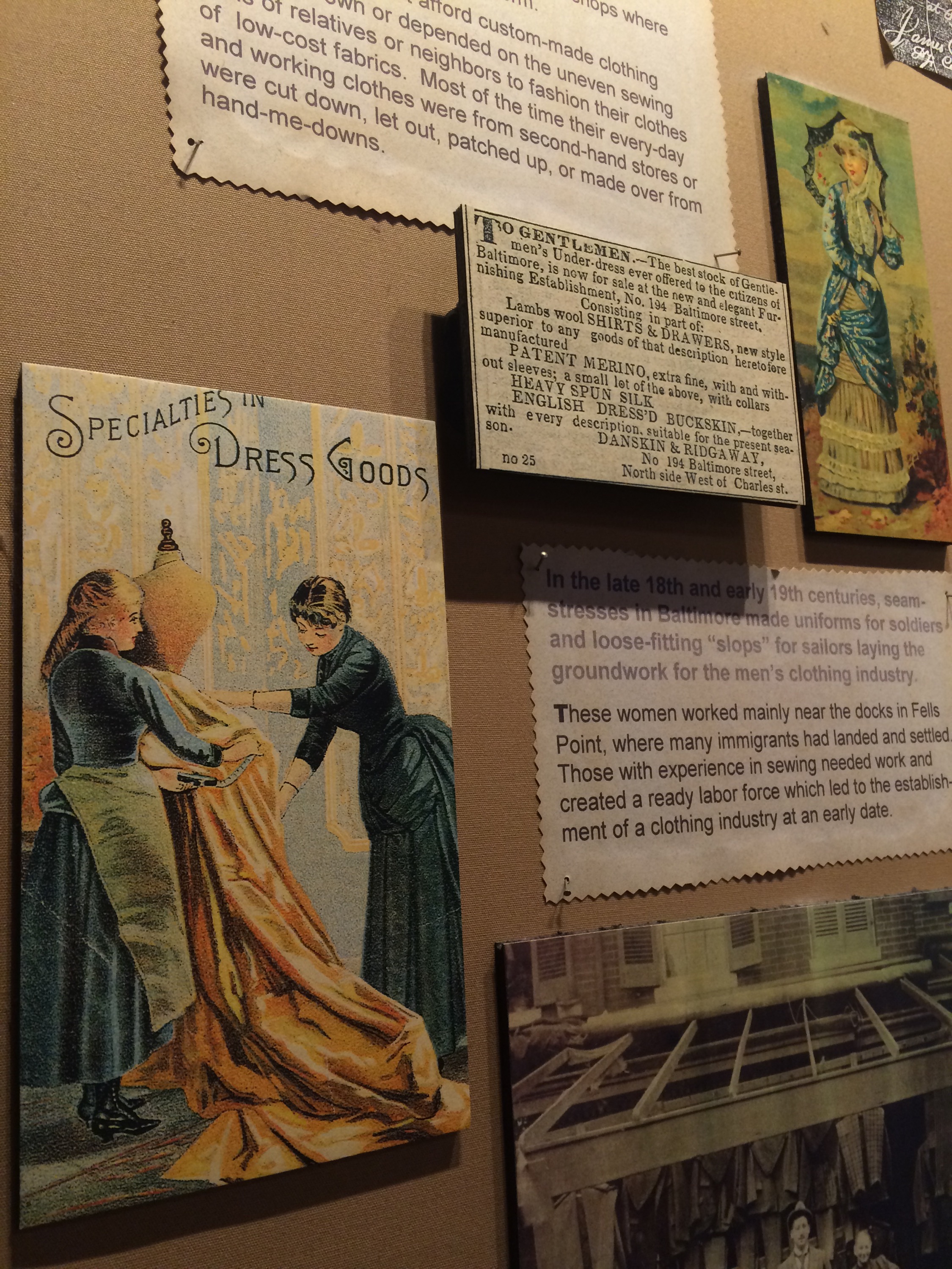 It was 2pm and they were closing at 4. I bought my ticket and sat in the mini theater taking notes as I had done many years away in fashion school. I walked around historic impressions of Baltimore city. I came specifically for the garment fashion industry exhibit.